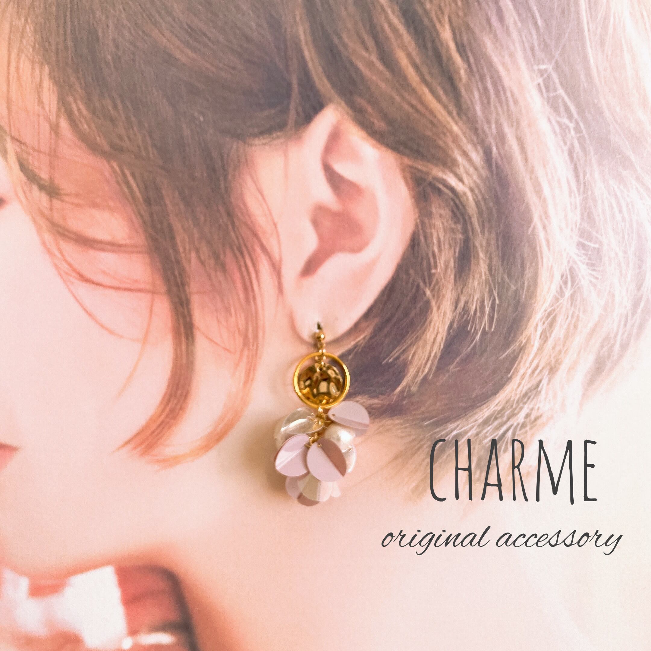 スパンコールからチラッと見えるコットンパールと、ゴールドのメタルプレートが大人可愛いアイテムになります。