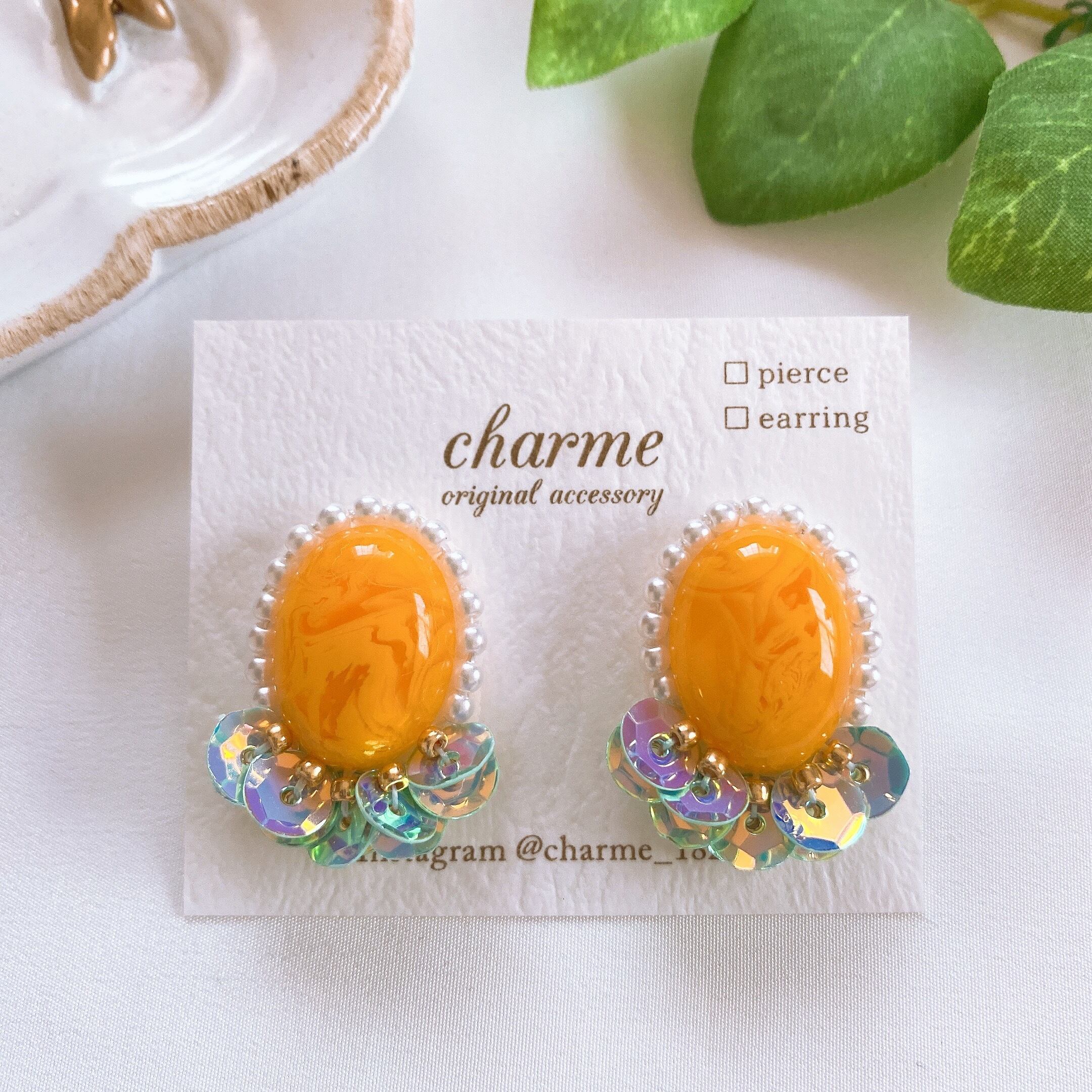 シェル風カボション×スパンコールpierce/earring
